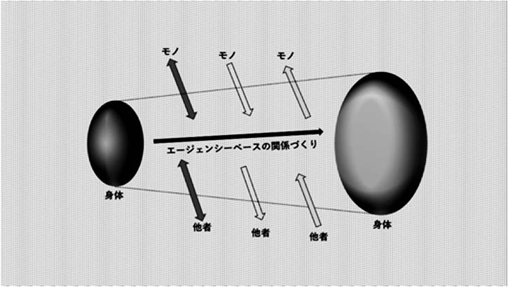 ここでいう「身体」とは、「心的な生を含む私を包んでいる世界と分かちつながる一定の空間を占める人間存在」とする。この「身体」の位置は、世界との関係において思想的にも実態としても大きく変化してきている。現在では、ポスト・ヒューマン時代と呼ばれ、人間中心主義的な身体観から世界の中に位置づく身体へと転換し、人間の身体とモノがフラットな関係(フラット・オントロジー)であることが自明となりつつある。子どもたちを含む現代の私たちの身体は、すでにモノありきの身体であり、かつてダナ・ハラウェイが「サイボーグ」と述べた身体が現実化していると言える。だからこそ私たちは、主体とは何かを問い続けるとともに一生付き合っていく自らの身体について知る必要があり、身体「の」(対象としての身体)「との」(ともにあるものとしての身体)「に・を通じた」(装置・感覚としての身体)学びなどが求められるのである。これまでの<体育>が仮にも学校教育において身体を対象としていたならば、このような状況下で改めて「身体」に視点を置き、学校全体での体育と体育科のあり方を問うことも求められるであろう。