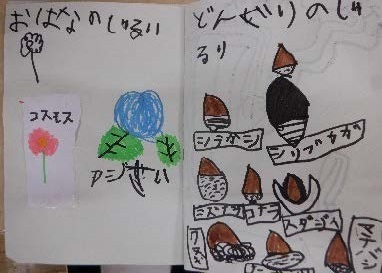 この遊びにおいて、子どもたちは、一人ひとり想像力を巡らせ、友達の気づきや発見に触発されながら、自ら感じ、考えたことを文字や絵で表現し、友達とやりとりを重ねていった。また、「研究」という言葉の魅力、多目的に使用できる空間、教師が用意した白衣に代わるワイシャツや子どもたちが名付けた「研究ノート」などが、遊びをより豊かにしていった。このことから、保育における「もの(場も含む)」の占める役割は大きく、子どもたちの想像力や創造力をかき立てる上で大きな影響をもたらすといえるであろう。さらに、この遊びの中では、研究所が気持ちよく過ごせる場になるようにと、自分達で考えたルールを守ろうとする子どもたちの姿も見られた。まさに自分たちのための「研究所」を子どもたち自らが創り出していった実践であった。