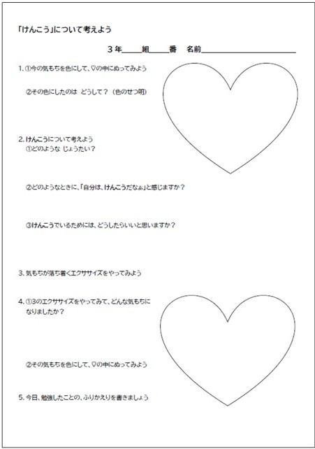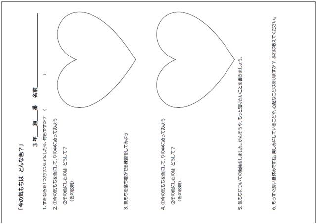 - 第3学年(体育科保健領域)「今の気持ちはどんな色?(第1報) ―色で気持ちをあらわしてみよう―」
