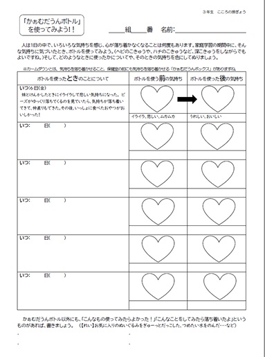 - 第3学年(体育科保健領域)「今の気持ちはどんな色?(第2報) ―かぁむだうんボトルをつかって気持ちを整えよう―」