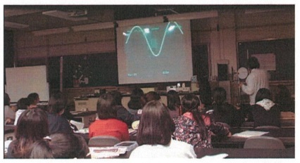 2014年度公開教育研究会における公開授業(2年必修)の実践報告。偏光現象を題材にして「現象の中の数学」という観点で数学と物理のコラボ授業を試みた。ベクトルを用いた偏光現象の理解から始めて、水面で反射した光の偏光状態を観察する生徒実験(ブルースター角の測定)と、その結果についての幾何的な分析および水の屈折率の算出を行った。さらに、円偏光につながる発展的な話題としてリサージュ図形を取り上げ、“手を動かして”実際に図形を描き出す参加型演示実験を行った。やや高度な内容も含んでいたのだが、かえってそれが生徒の知的探究心を促す効果をもたらした。