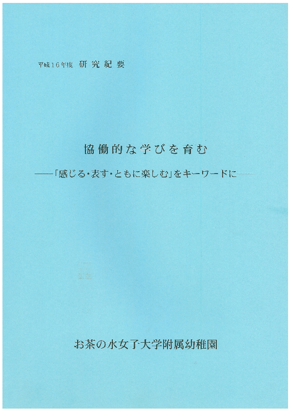 協働的な学びを育む―「感じる・表す・ともに楽しむ」をキーワードに―(2004年度 幼稚園研究紀要)