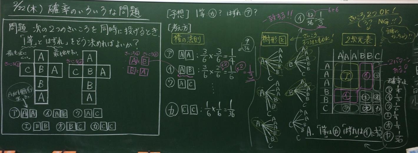 中学校第2学年で生徒が確率を基に個人個人の解釈を加え、意思決定する授業「エフロンのさいころ」を実践した。