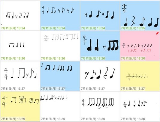 「グループでリズムアンサンブルを創作しよう」という学習活動の実践です。「グループでリズムアンサンブルを創作しよう」という学習活動の実践である。創作活動の前に、「打楽器のための小品」(黒澤吉徳作曲)を用いて、リズム音楽のアナリーゼをしてリズム創作のイメージをつくり、次に、各自のリズムパターンを創作してグループで共有し、リズムアンサンブルをつくる。この活動を通して、リズムとは何か、について感じ取ることをねらいとしている。楽曲の構造を意識しながら既成作品の器楽活動をし、それを参考にして個々に1小節のリズムパターンをつくり、グループで協働しながらリズムアンサンブルを創作する活動は、個々に負荷をかけずにリズムアンサンブルを楽しみながらつくることができることがわかった。