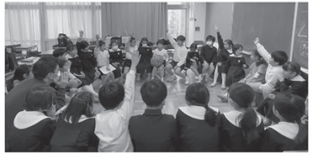 3年生のPJでは,まずはやってみることを大切にし,試行錯誤しながら,とことん自分のしたいことに取り組む時間をつくってきた。そして,活動とともに週に1度のペースで,サークルの形(図 1)となって,PJ の取り組み状況や今後への思いなどを聴きあい,分かちあうことを重ねてきた。また,てつがくの時間には,PJでの活動をふり返り,悩んだり困ったりする中で生じた思いや活動を進める中で生じた疑問を共有し,それぞれの思いを聴きあい対話することも行ってきた。活動の中での対話や活動をふまえた対話を通して,てつがくするとともに,互いの思いを知り,感じ方の違いに気づいたり共感したりする中で,「自分」を見つめていく営みを大切にしてきた。
