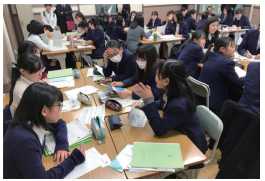 本講座では、生命・医療・衛生に関連するグローバルな諸課題について探究活動を行った。主に1学期には、生徒が多角的な視点で探究活動を実践できるよう、専門家による講義やフィールドワーク(以下、FW)を企画して支援した。具体的には、6月にお茶の水女子大学の大森美香教授による「心身の健康に関する心理学的アプローチ」、同大学の赤松利恵教授による「格差を広げないためには、どのような食育が必要か」の講義を実施した。FW では、4月に目黒寄生虫館において寄生虫研究の歴史や標本の展示見学、5月にJICA 地球ひろばにおいてSDGs に関する解説と「発展途上国(ニカラグア)における医療支援について」の講義と展示見学、国立健康・栄養研究所において「健康寿命の延伸や健康格差の縮小に向けた取組」の講義と施設見学、7月には第一三共くすりミュージアムにおいて医薬品の開発過程や医薬品研究の最先端についての解説と展示見学、10月には希望者対象で東京大学医科学研究所を訪問し、東京大学の堤武也准教授による「感染症研究(医療支援)について」の講義と研究室の見学を行った。