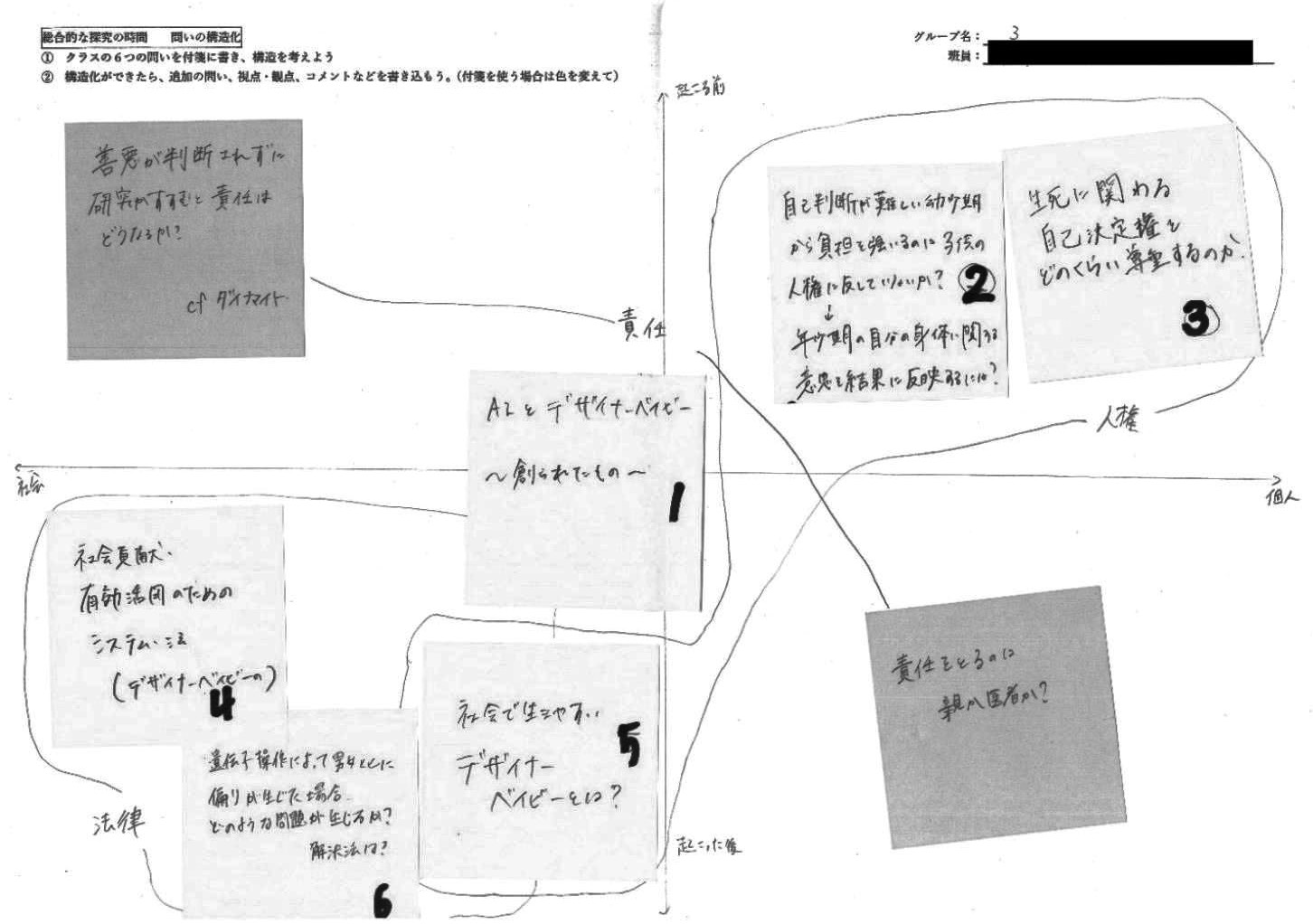 本校の3年次必修・SSH学校設定科目「持続可能な社会の探究(総合的な探究の時間)」では,「科学が問うことはできるが,科学によって答えることはできない課題」という枠組みの中で,生徒が班ごとに問いを設定して探究学習を行った。「総合的な探究の時間」の指導に際して,「課題の設定」において生徒・教師ともに困難を感じやすいという先行研究の知見を踏まえ,本稿では,課題設定の枠組みと,生徒が複数の問いを構造化するという課題設定の指導の有効性について報告する。