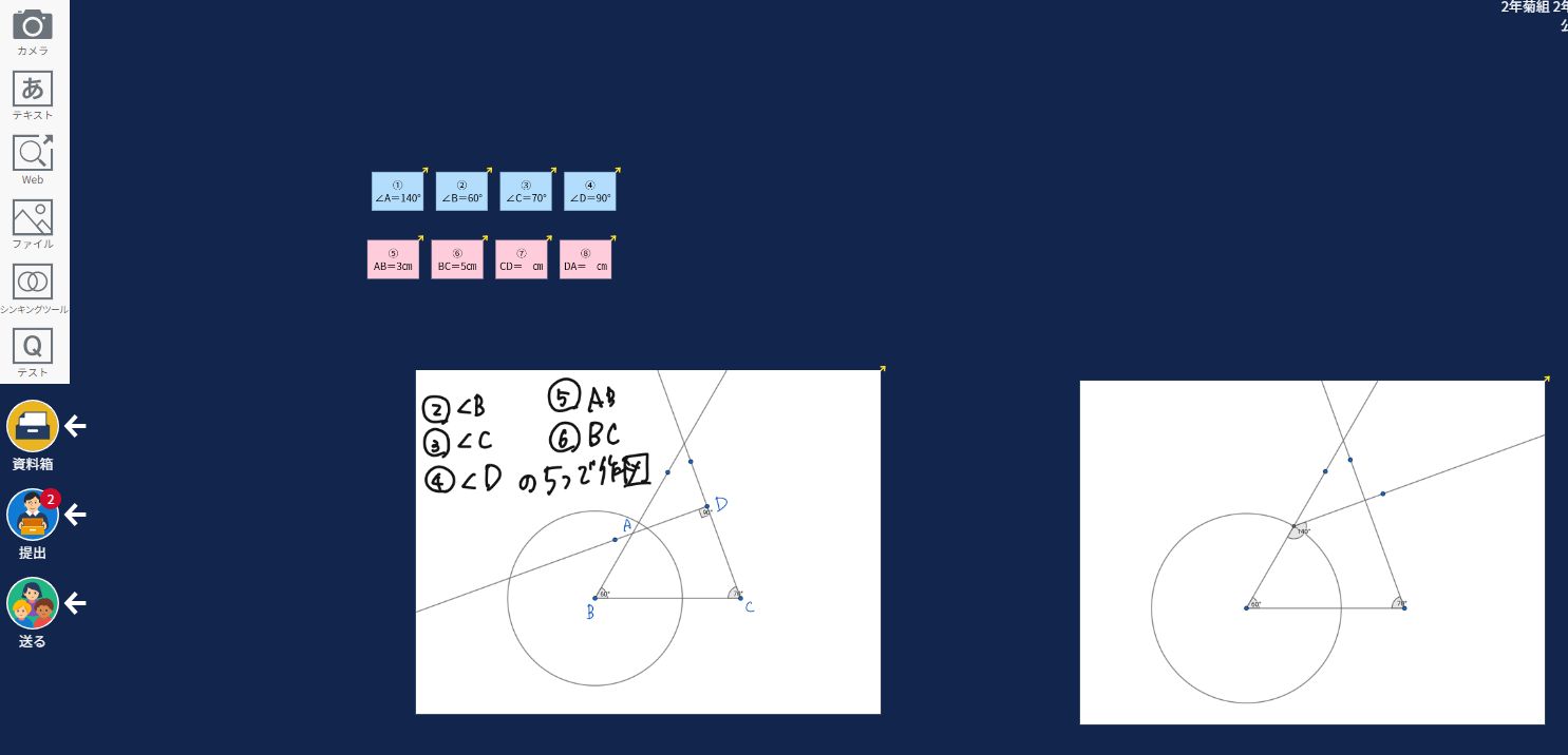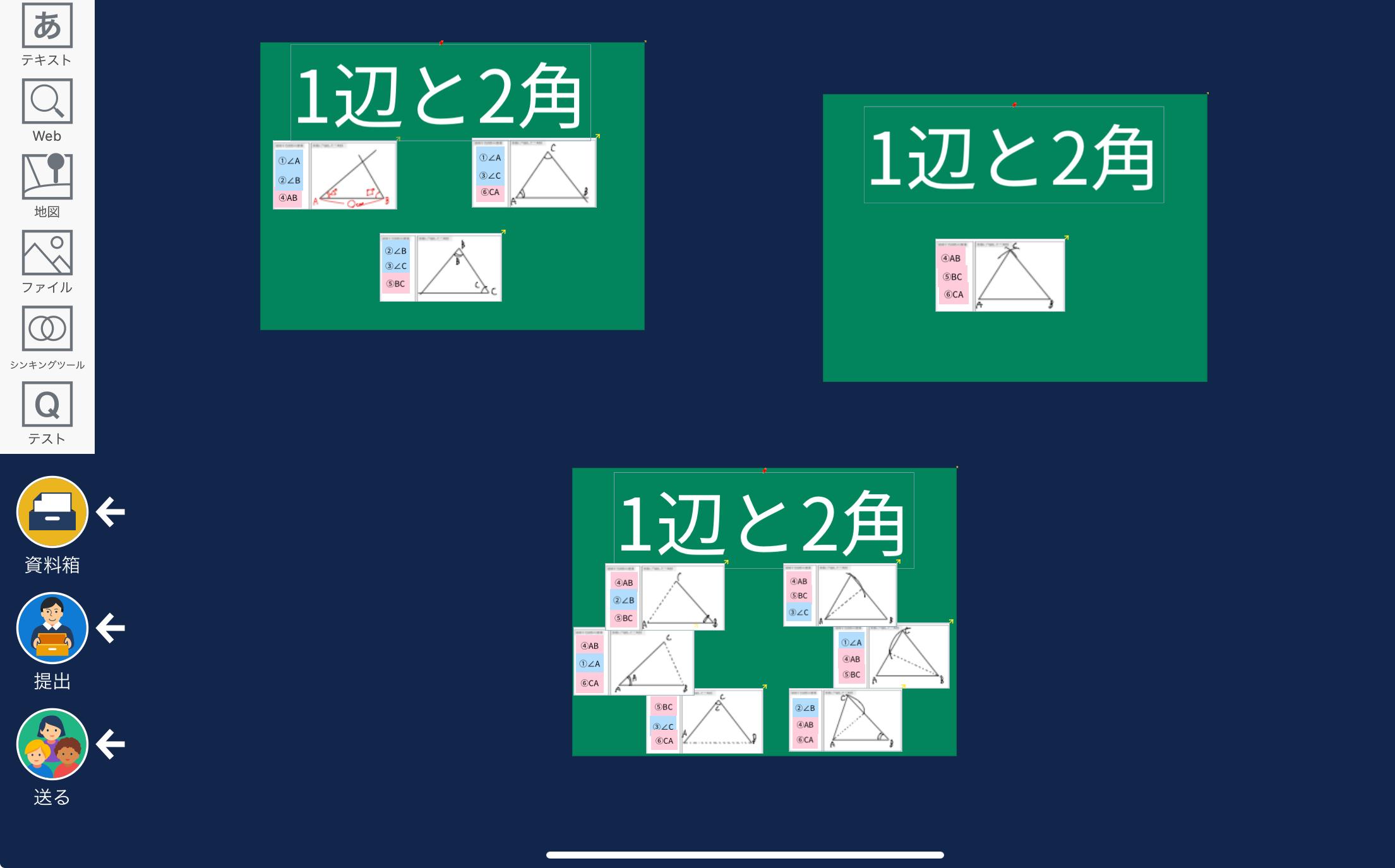 合同条件を既成のもの、固定的で確定的なものとせず、生徒自身が試行錯誤する中でつくり出すという学習に取り組みます。また、その経験をもとに四角形や五角形等、別の図形についても発展させて考える創造的思考を育成します。
